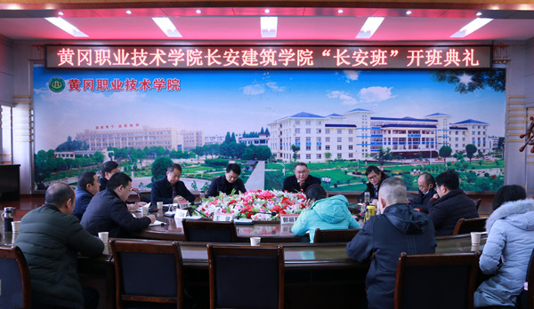 12月3日,beat365英国官方网站长安建筑学院“长安班”开班典礼在学校四楼中心会议室隆重召开。学校校长姜安心出席,湖北长安建设集团股份有限公司副总经理石柱、李智威及黄冈分公司经理余义锋,学校科研处(校企合作处)处长胡亚学、学生工作部(处)部(处)长熊楚舒、招生处处长田安国、党委宣传部常务副部长刘国峰、教务处副处长郭丽琴,建筑学院党总支书记刘晓敏、党总支副书记许文彬、副院长王健、全体专业主任以及建筑工程技术专业团队教师和“长安班”34名学生参加,开班典礼由刘晓敏主持。