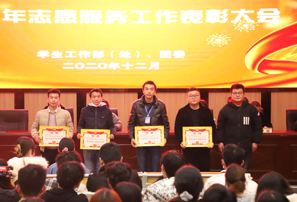 冯爱利宣读了《关于表彰2019—2020学年度青年志愿者服务工作先进集体和优秀青年志愿者的决定》。医药学院团总支、护理学院团总支、电子信息学院团总支、生物与制药工程学院团总支荣获“青年志愿服务工作先进集体”称号,高仙、郭薇、李嘉文等407名同学荣获“优秀青年志愿者”称号。医药学院团总支学生会青年志愿者服务部负责人李思文作典型发言,分享了参与组织志愿服务工作的心得体会和工作规划。随后,在场的领导、老师为获奖单位及学生代表进行了颁奖。
