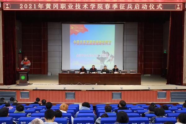 12月18日下午,2021年春季征兵工作启动仪式暨国防安全教育讲座在学术报告厅举行。黄冈军分区副司令员、市征兵办公室主任盛传发,校长姜安心,学生工作部(处)部(处)长、武装部常务副部长熊楚舒,团委书记崔现强,各教学学院党总支副书记、团总支书记,全体辅导员及320名学生代表参加了会议,大会由熊楚舒主持。