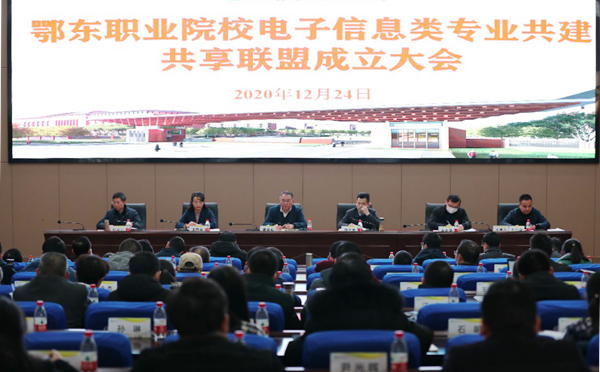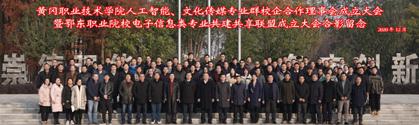 12月24日上午,beat365官网在教师发展中心1号厅举行了人工智能、文化传媒专业群校企合作理事会成立大会暨鄂东职业院校电子信息类专业共建共享联盟成立大会。