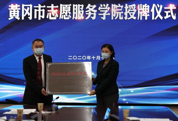 10月19日上午,湖北省委宣传部副部长余红岚为黄冈市志愿服务学院授牌。该学院由黄冈市委文明办、beat365英国官方网站共同建设,体系化培训志愿者,是我省首家由市级精神文明建设指导机构与高校共建的公益性志愿服务培训机构。