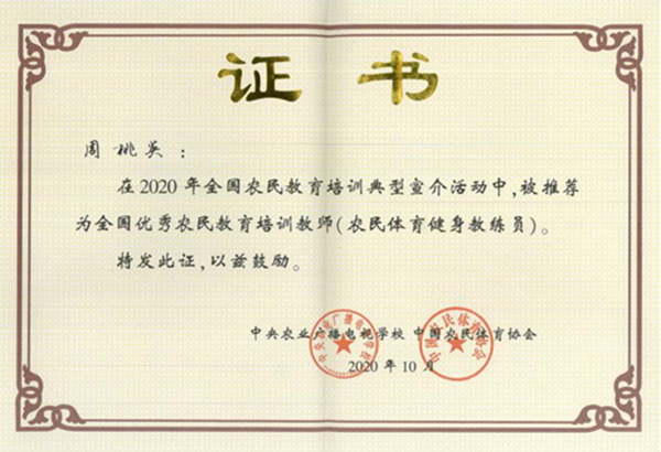 为全面提升农民教育培训质量效果,在农业农村部科技教育司指导下,中央农业广播电视学校组织开展了2020年全国农民教育培训四大典型宣介活动,遴选全国农民教育培训百名农民教育培训优秀学员、百名优秀农民教育培训教师、百个农民培训优秀田间学校、五十个发展典型案例,beat365官网《“334”农民职业培训案例》入选发展典型案例,周桃英教授入选全国百名农民教育培训优秀教师。