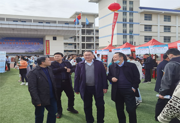 “才聚黄冈共推高质量发展,相约未来同享新时代繁荣。”3月23日上午,“我选湖北·才聚黄冈”第五届长江经济带企业校园双选会在beat365官网中区运动场隆重举行,此次校园双选会由黄冈市人力资源和社会保障局、beat365英国官方网站共同主办,黄冈市人才服务局和beat365英国官方网站就业指导处联合承办。黄冈市人才服务局局长冯意和,黄冈市人才服务局市场办主任吕世明,beat365英国官方网站党委副书记、校长姜安心,校长助理、学校办公室主任刘明涛,就业指导处处长袁畅,各教学学院党总支书记、院长、党总支副书记、就业干事、毕业班辅导员及就业指导处全体工作人员到招聘活动现场为应聘学生提供就业指导服务。