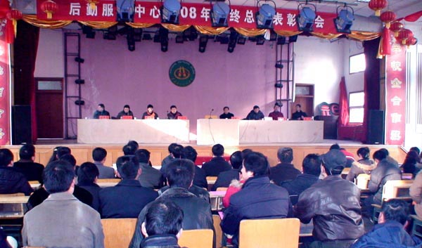 2009年1月11日上午9:00,后勤服务中心2008年年终总结表彰大会在大学生活动中心隆重举行。副院长李耀水,人事处处长郑柏松,国资处、后勤处副处长许文彬应邀出席会议,后勤全体干部职工参加了大会,大会由后勤服务中心周祥焱同志主持。