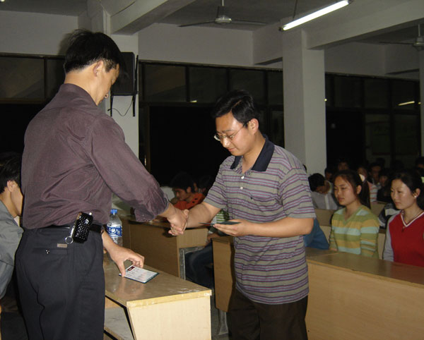 会上,各位领导和老师代表学院和机电系对我院制冷学会的73名优秀会员申请加入中国制冷学会并获得批准表示热烈的祝贺,对专业教师在申请过程中所做的大量工作表示感谢,对他们今后从专业理论知识和动手能力等方面提出了更高的要求,同时也对他们寄予了厚望。颁证仪式开始后,各位老师把一个个带有特殊意义的会员证授予了学生会员并亲切握手合影。