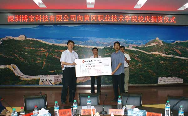 2009年9月12日,机电工程系在凝智楼四楼会议室隆重举行校企合作单位为学院校庆捐款仪式。学院党委书记张鹤桥、副院长汪晓凌,湖北彤鑫发动机有限公司副总经理何俊生、深圳市博宝科技有限公司董事长熊用兵,博宝科技有限公司(黄冈)冲压事业处总经理张振耀,校庆办主任叶忠提、院办公室副主任罗登宏,机电工程系领导、部分教师和学生代表参加了捐赠仪式。仪式分别由系总支书记秦训鹏和系主任游英杰主持。