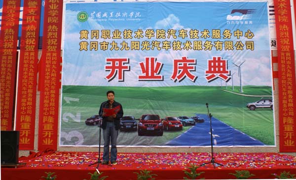 2009年10月13日上午10:00,beat365英国官方网站汽车技术服务中心、黄冈市九九阳光汽车技术服务有限公司开业庆典在黄州赤壁大道87号(贵宾楼旁)隆重举行。beat365英国官方网站院长陈年友、工会主席王维华、副院长段院生、市文化局副局长胡国民、黄冈市九九阳光汽车技术服务有限公司总经理刘剑、学院各系部处室领导和黄冈市70余家祝贺单位来宾近200余人参加了庆典活动。