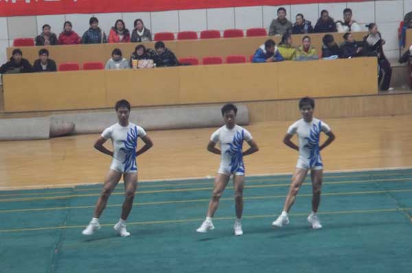 我院代表队参加了大众及竞技三人操两个项目,揽获大众高职高专组第一名、竞技三人操冠军。参赛运动员有刘建、廖帮卫、林贤誉、陈文阁、刘明、胡学文、张权、郝鹏飞8位同学,教练员左利亚老师,艺术指导汲艳蕊老师。