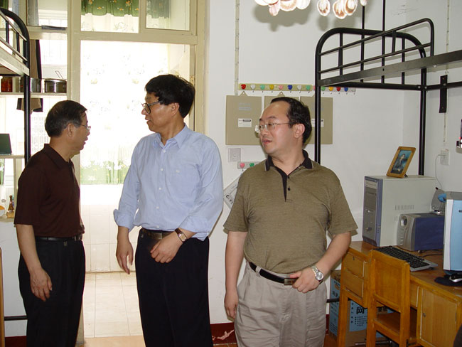 参观学生公寓(右:冯刚 中:涂普生 左:高长舒)