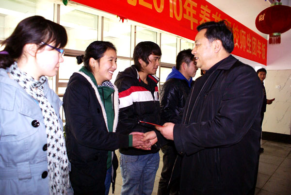 2010年2月7日,天气晴朗,空气清新,人们沉浸在阴历小年的喜悦之中。中午12:00,院长陈年友、副院长汪晓凌在学院西苑餐厅二楼,与寒假留校的经济困难学生、值班干部、外籍教师、保卫和后勤人员,约200余人共吃团年饭、喜迎新春佳节。校园内春意盎然,鞭炮隆隆;餐厅内佳肴飘香,笑声朗朗,节日氛围浓郁。留校师生倍感亲切温暖,大家其乐融融,亲如一家人。
