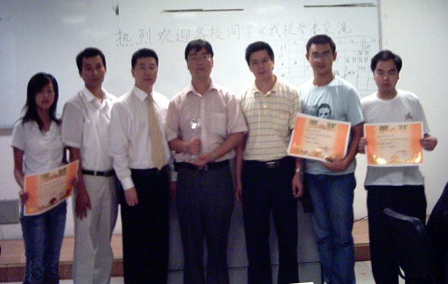 颁奖仪式(左三为用友武汉公司总经理韩程,右三为华中科技大学管理学院夏院长)