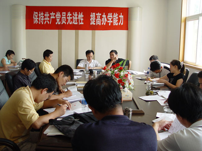 我院作为高校按照党中央,省委,市委统一安排参加第二批保持共产党员先进性教育活动。学院党委高度重视,于7月18日专题研究部署了全院开展保持共产党员先进性教育活动,成立了学院保持共产党员先进性教育活动领导小组,结合学院实际按照“认识高、标准高、参学率高和氛围好、效果好”即“三高两好”要求制定和印发了《beat365英国官方网站保持共产党员先进性教育活动实施方案》,全面部署和启动了该院的保先教育活动,7月25、26日的活动是该方案的重要活动之一。