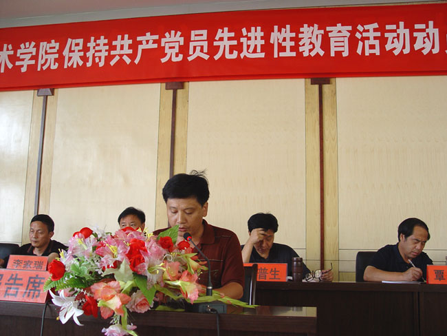 学院党委书记涂普生同志在动员大会上指出:全院党员要统一思想,提高认识,明确先进性教育活动对于全面加强学院党的建设促进学院改革与发展具有极其重大的意义,它是提高学院党员素质的有效形式,是加强基层意识建设难得的机遇,是促进学院各项事业发展的重要保证。涂普生同志强调,进行保持共产党员先进性教育,要明确指导思想、目标要求和基本原则,把握方法步骤,扎实有效地开展活动。同时,要切实加强领导、狠抓落实,确保先进性教育活动深入健康开展。涂普生同志对学院开展保持共产党员先进性教育活动提出了具体的要求。