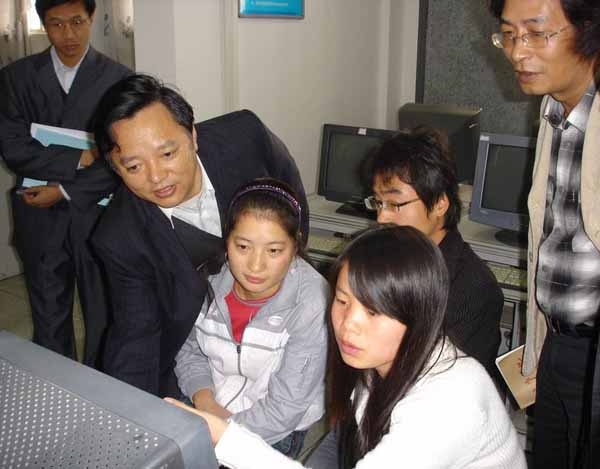 院长陈年友与正在电子阅览室学习的学生进行交流