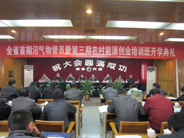 2010年12月18日上午9:00,由我院承担的全省2010年首期沼气物管员暨第三期农村能源创业培训班在菱湖宾馆二楼会议室隆重召开。参加开班典礼的领导有湖北省农业厅科教厅正处级调研员高广金、省能源办副主任郑洪林,黄冈市农业局局长张烈松,beat365英国官方网站副院长段院生、省能源办副处长江绣屏、省农业发展中心副主任陈钧、黄冈市能源办主任霍雅彬、黄冈市农业局科教科科长陈佳治。生物系部分领导、老师和培训班全体学员参加了典礼。开班典礼由江绣屏副处长主持。