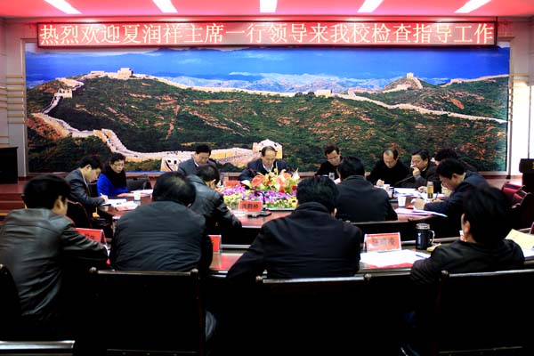 首先,夏主席一行在学校中心会议室举行了座谈会。王局长主持了座谈会。学校党委书记张鹤桥,校长陈年友,副校长李耀水,副书记、工会主席王维华,副校长汪晓凌、段院生,党委委员郑柏松出席了会议。学校办公室、组织部、宣传部、教务处、人事处、计财处、招生处、就业处、产学研工作处、高教所、保卫处、后勤服务中心等部门的领导参加了会议。