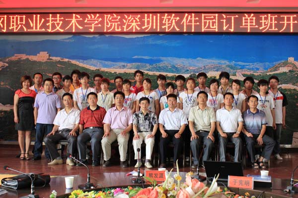 开班仪式由电子信息学院朱建军书记主持,首先由副校长熊发涯教授致辞,他对本次校企合作给予了充分肯定,并对订单班学生后期的学习提出了明确的要求。接着于宪明主任介绍了深圳软件园的基本情况,对学生将来的学习与就业提供了很好的思路。电子信息学院院长罗幼平向学生介绍了开办此订单班的详细经过,鼓励学生利用此次机会,为顺利就业打下良好基础。深圳软件园黄东磊经理代表企业方对学生的学习阶段进行了详细说明,明确了每一阶段学生应该掌握的技能。最后订单班学生董莉同学代表订单班全体学生发言,夏睛同学代表订单班学生同深圳软件园于宪明主任签订就业安置协议。