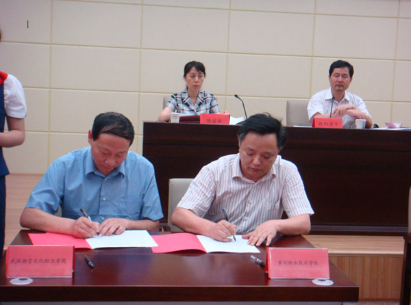 校长陈年友和武汉语言文化职业学院院长鲁晓成签订协议书