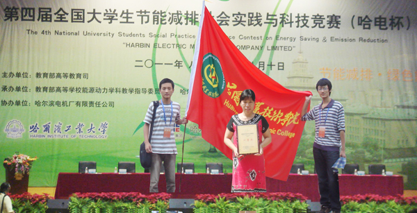 2011年8月8日至8月10日,由教育部高等教育司主办的第四届全国大学生节能减排社会实践与科技竞赛在哈尔滨工业大学举行,由电子信息学院胡美香老师创意并编导,刘洋、高哲、罗静三位同学参与制作的《节能减排拍手歌》动画宣传片荣获一等奖。