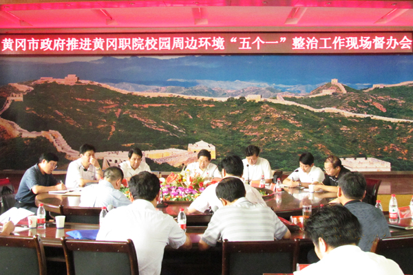 2011年8月15日上午,市委常委、副市长熊长江带领市政府办、黄州区政府、市综治办、市政府督查室、市城市管理执法局、市公安局、市教育局、市文化局、市卫生局、市工商局、市环保局、市国土资源局、市交警支队等单位负责人到beat365官网,就校园周边环境整治工作进行督办。熊长江一行现场察看了学校周边环境整治工作情况后,在凝智楼四楼中心会议室召开了督办会。会议由市政府副秘书长方光明主持。学校党委书记张鹤桥,校长陈年友,副书记王维华,副校长汪晓凌、熊发涯,党委委员郑柏松及相关部门负责人参加了会议。