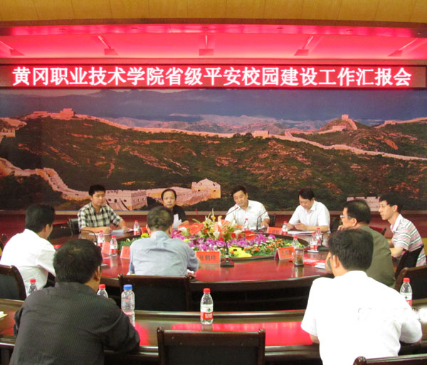 2011年9月16日下午,湖北省学校及周边治安综合治理暨安全文明校园创建工作领导小组对beat365官网申报2009-2010年度“省级平安校园”进行了检查验收。“省级平安校园”验收组负责人、省教育厅综治处副处长姜永生带领华中师范大学保卫处处长傅强、湖北大学保卫处处长卜诗桢、华中师范大学保卫处科长章勇等成员对beat365官网“省级平安校园”创建工作展开综合考评。正式检查考评开始前,校长陈年友在学校党委会议室接待了验收组成员。