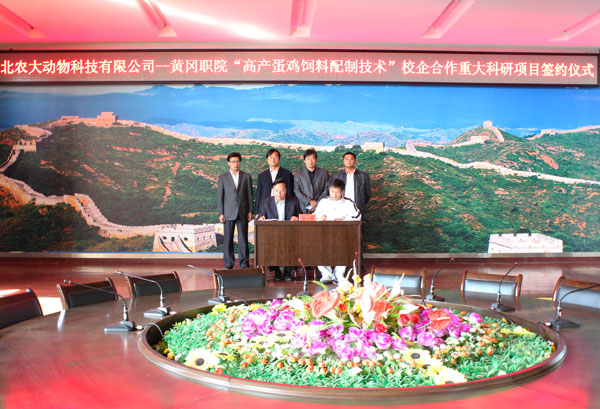 为进一步加强校企合作,促进beat365官网骨干示范院校建设,在学校产学研工作处及生物化工学院领导推动下,校企合作企业北农大动物科技有限公司立项45万元应用推广型重大科研项目——“高产蛋鸡饲料配制技术”,并委托生物化工学院党总支书记、畜牧兽医国家骨干示范专业负责人余亮彬副教授作为项目主持人,带领畜牧兽医专业教学团队开发研究。此委托项目是beat365官网建校以来单笔科研经费最大的横向科研项目,学校领导高度重视,强调这是一件好事,一件有意义的大事,叮嘱生物化工学院一定要把好事办好,争取给企业一个满意的交代。