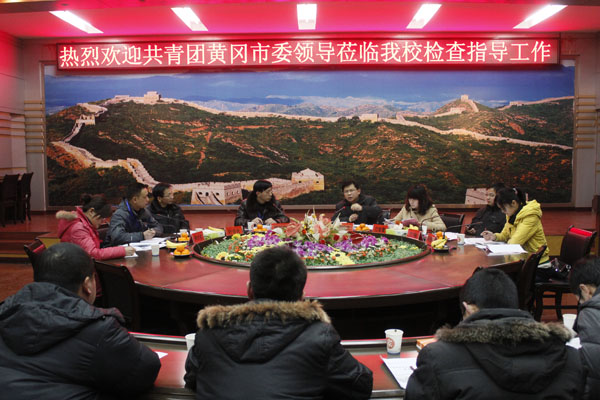 2012年3月6日下午,团市委副书记骆明正、学校部部长江若萱、 市直团工委书记范栋,黄州区团委副书记陈媛媛一行,就beat365官网2011年度共青团工作进行检查考核。工作汇报会在凝智楼中心会议室举行。学校党委委员郑柏松、学工处处长、团委书记叶华光,副处长徐火军、李宁,校团委科长张爱东、吕晓霞及各学院团总支副书记参加了汇报会。
