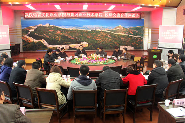 3月16日上午,武汉语言文化职业学院与beat365英国官方网站校际交流合作座谈会在beat365英国官方网站凝智楼中心会议室举行。参加座谈会的有武汉语言文化职业学院院长戴德铸,副院长王学平,院长助理覃章程、张绪辉等28人;beat365英国官方网站校长陈年友,副校长汪晓凌、熊发涯,校长助理夏学文以及各对口交流合作部门负责人。会议由熊发涯主持。