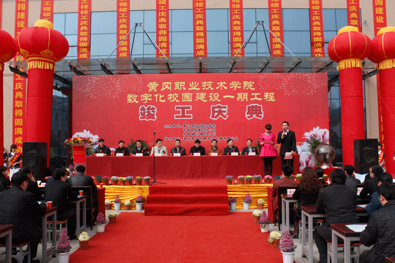 庆典由学校党委书记张鹤桥同志主持,校长陈年友教授致欢迎辞,黄冈市人大常委会副主任王建明,中国电信黄冈分公司总经理蔡志军、中国银行黄冈分行行长汪宁一等分别讲话,庆典在礼炮齐鸣、与会领导及代表触摸电子球中落下帷幕。随后,与会领导兴致勃勃地参观了学校数据中心机房和一卡通管理中心。