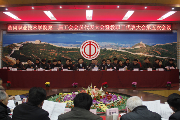 2012年3月17日上午8时整,伴随着《国歌》慷慨激昂的旋律,学校第二届工会会员代表大会暨教职工代表大会第五次会议在凝智楼中心会议室隆重召开。出席本次会议的正式代表有126名,特邀代表15名,列席代表13名,会期一天。学校党委书记张鹤桥致热情洋溢的开幕词。
