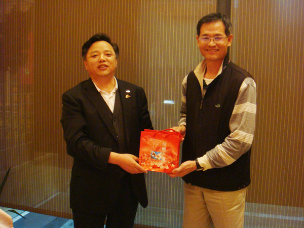 台湾朝阳科技大学副校长陈建胜向校长陈年友赠送纪念品