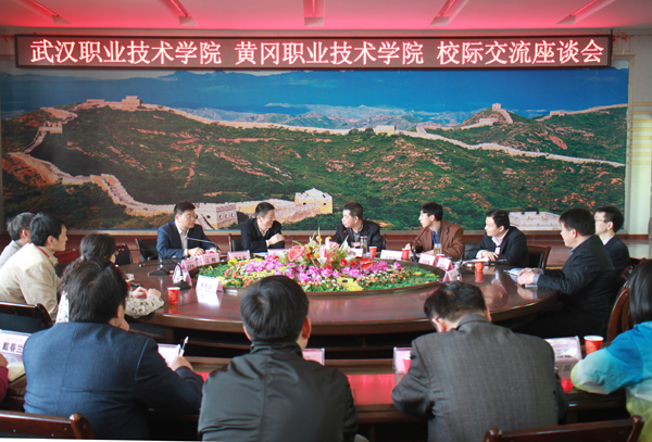 2012年4月13日上午10:00,武汉职业技术学院副书记李洪渠率团来beat365官网进行校际交流。beat365官网党委书记张鹤桥、党委委员郑柏松、校办主任刘明涛、学工处处长叶华光、保卫处处长邓国璋、招生就业处处长王政芳、各教学学院党总支副书记、团总支书记以及学工处工作人员参加了交流活动。