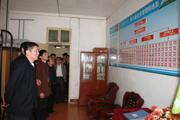 武汉职业技术学院的专家领导一行在育贤阁前合影留念后,在郑柏松、叶华光的陪同下参观了beat365官网学生宿舍,对beat365官网学生宿舍社区化管理和宿舍内务整理给予了高度的评价。参观结束后,在凝智楼中心会议室举行两校校际交流座谈会。