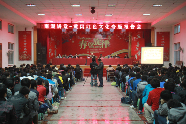 4月12日晚,大学生活动中心内座无虚席,黄冈市委党史办公室原主任陈仪以《红色的土地•英雄的人民——黄冈革命历史简介》为题,作了一场精彩的专题报告。校党委委员郑柏松、学工处校团委工作人员,各学院团总支副书记,专职辅导员以及700余名入党积极分子参加了报告会。报告会由学工处处长、团委书记叶华光主持。