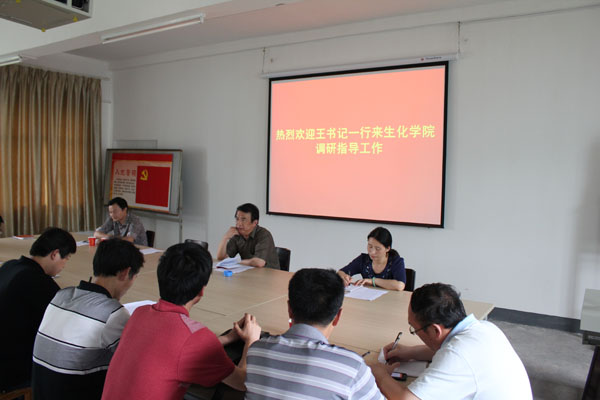 余亮彬代表学院党总支向王维华副书记一行汇报了生物化工学院基层党建相关工作情况。他说,生物化工学院党总支在学校党委的正确领导下,坚定总支领导,实行集体决策,坚持群众路线,实行院务公开,充分发挥各党支部工作中的战斗堡垒作用,不断提升教职工凝聚力和战斗力。三年来,生物化工学院在党建工作中取得了一定的成绩,学院党总支先后被学校党委评为“好班子”、黄冈市委评为“先进基层党组织”,学管党支部也多次受到省市表彰。院长陈全胜汇报了党员在国家骨干校建设等工作中的先锋模范作用发挥情况,生物化工学院党政联席会议制度、民主决策、党务政务财务三公开等情况。与会的其他代表就党建工作及当前教职工比较关心的问题,如二级管理机制、教职工住房调整等,向王维华副书记一行汇报了大家的思想。