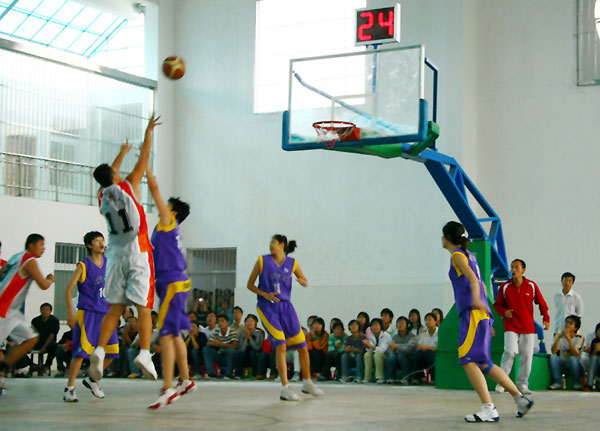 10月19日下午,2005—2006全国女子CUBA联赛第三名北京大学代表队与我院男子篮球队友谊赛在我院体育馆隆重举行。学院领导涂普生、覃守云、李耀水、王维华、段院生、夏启中,中国移动黄冈分公司副总经理袁培新以及我院各系部处室负责人、教工代表和学生代表出席并观看了此次比赛。