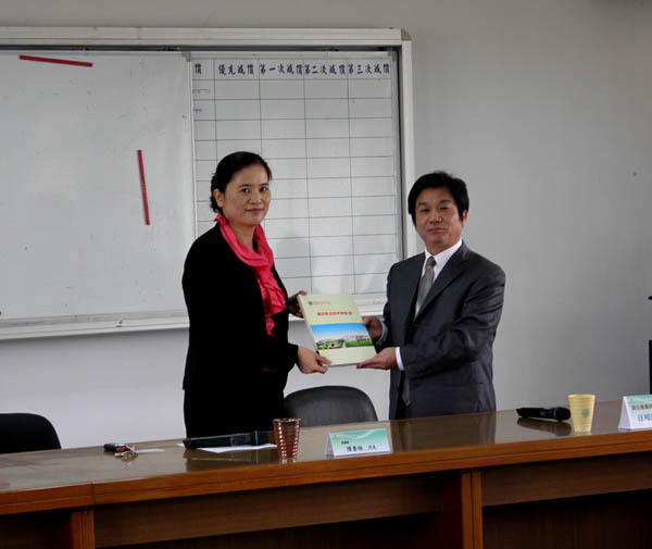 高雄冈山农工高级职业学校陈校长和副校长汪晓凌互赠礼品