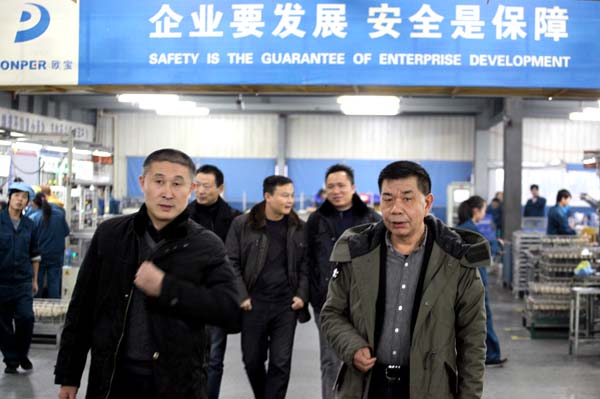 党委书记张鹤桥在人力资源部部长黄同友等陪同下参观生产车间