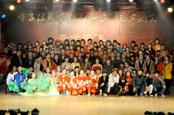 12月25日,在这个平安吉祥喜庆的日子里,电子信息学院在大学生活动中心隆重举行“盛世腾飞,超越梦想”大型元旦晚会,校党委委员郑柏松,校学工处副处长焦爱新,电子信息学院党总支书记朱建军、院长罗幼平、副书记陈胜红、副院长孙俊、办公室主任郝懿、数字传媒系主任夏文秀、电子信息系主任李敏、国际软件学院负责人郑远龙、各教研室负责人、全体专兼职老师、学工人员及在校的近1200名学生到场参加了本次盛会。
