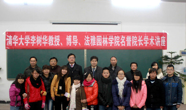 2012年12月26日下午,清华大学博导李树华教授应邀来beat365官网作学术报告。报告会在敬贤阁101举行,报告的主题为“基于天地人三才之道的风景园林设计论”。参加报告会的有生物化工学院院长陈全胜、副院长王银林、生物技术系副主任陈彦霖,园林技术、园艺技术专业的全体教师及学生。报告会由生物化工学院院长陈全胜主持。