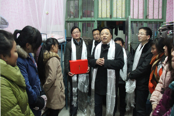 雪莲花香溢南湖,温暖情铺满校园。陈校长在南四舍看望藏族学生德庆时,提前给藏族学生拜年,他对西藏人文地理的熟悉,随和的话语,让藏族学生倍感亲切,倍加温暖,藏族学生以藏民族特有的礼节给陈校长及各位领导老师敬献了哈达,表达了对学校的感恩之情和对领导老师的殷切祝福。