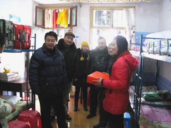 在20栋A302、37栋203学生宿舍里,王维华与同学们进行了亲切的交谈,热情地询问了同学们的学习、生活状况,并对同学们在日常生活中遇到的困难与问题给予了细致周到的解答。随后将保暖内衣一一送至2012级贫困学生李鹏飞、宋欢欢手中,并嘱托他们要以积极乐观的心态面对生活中的困难,发扬艰苦奋斗的精神,努力学习专业知识,立志成才,报效祖国。