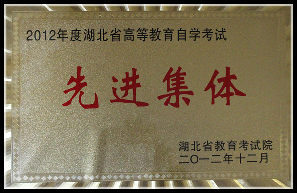 2012年,在省、市教育考试院的指导下,在学校党委、行政的重视和教职工的共同努力下,beat365官网2012年度自学考试工作持续、健康发展,各项工作稳步、有序推进,全年无任何安全责任事故发生,出色完成自学考试各项工作任务,得到省教育考试院的肯定。在2012年度湖北省高等教育自学考试工作会议上beat365官网被评为“2012年度湖北省高等教育自学考试先进集体”荣誉称号,是黄冈市唯一获此殊荣的单位,全省只有2所高职院校获此殊荣。