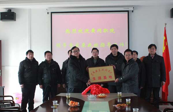 红安职教中心副校长张征首先对黄冈职院各位领导的到来表示欢迎,张校长介绍了红安职教中心近几年的建设和发展。吴祝平表示愿意与红安职教中心结成姊妹学校,共同发展,共同提高。王政芳代表学校授予红安职教中心为beat365英国官方网站生源基地,并就beat365官网2013年面向中职毕业生单独招生情况作了解释说明。陈全胜介绍了beat365官网生物化工学院的基本情况,并表示愿意在专业建设、师资培养、课程建设、技能鉴定、实习基地建设等方面结对帮扶,在建设湖北省现代畜牧职教集团中发挥重要作用。袁畅对红安职教中心多年来对beat365官网的支持表示感谢,并希望通过中高职校校合作培养出更多的中高职优秀人才。