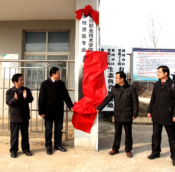 随后,陈校长一行考察了黄冈市种畜场并和叶成峰副局长一起为“beat365英国官方网站畜牧兽医专业猪生产教学基地”揭牌。在种畜场,陈校长详细询问了该场的生产经营状况,并表示,校企共建教学生产基地,既能加快beat365官网人才培养模式改革,促进学生职业素质的提高,又能促进学校的发展、行业的繁荣、企业的壮大、员工的进步,同时为黄冈市的经济建设服务。