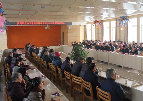 党委书记张鹤桥代表学校党委、行政向各位离退休干部致以新年的祝福。他说,2012年我们取得了骄人的成绩,骨干院校建设顺利推进,内涵发展再上台阶,招生就业两兴旺,学生平安、校园和谐、文化建设全面领先,文明创建再创佳绩,党的建设省委表彰,办学环境逐步改善,校园面貌焕然一新,为学校的持续健康发展打下了坚实的基础,这些成绩的取得,是离退休老干部关心、支持、包容和维护的结果,他们的高风亮节,感染和鼓励着全体教职员工。张书记强调,学校建设发展的任务还十分艰巨,任重而道远,党委一班人必须要扎实打基础,抓内涵,强管理,创机制,管长远,争进位,再发展,为离退休老干部安度晚年提供有力保障。同时,张书记表示,学校党委将继续高度重视老干工作,希望离退休工作处要创新工作方法,适应老干工作新要求,让离退休老干部真正老有所学、老有所为、老有所乐。最后,张书记代表学校全体教职员工,给离退休老干部送去了真诚的祝福。