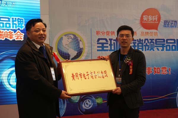 买多网黄冈财富论坛上,黄冈市电子商务协会会长陈年友教授为“黄冈电子商务创意园”和“买多网联动天下黄冈营销服务中心”授牌。
