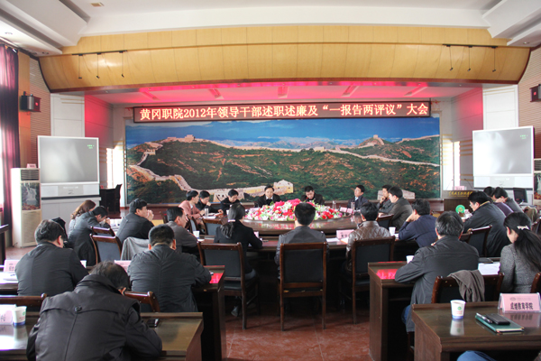 3月7日下午,在学校四楼中心会议室,beat365官网召开了2012年度校领导述职述廉暨干部选拔任用工作“一报告两评议”大会。市委组织部叶一科长到会指导,校领导班子成员及全体中层干部参加了会议。大会由校党委书记张鹤桥主持。