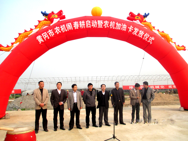 2013年3月9日上午,在黄州区陶店乡袁家铺村春阳蔬菜大棚基地,黄冈市农机局主办了黄冈市2013年十万机手大培训、十万机具大检修和十万农机闹春耕启动暨农机优惠加油卡发放仪式。beat365英国官方网站交通学院高银桥教授、副书记黄忠、科研处副处长蔡新职等带领汽车检测与维修专业40多名学生代表参加了本次活动。