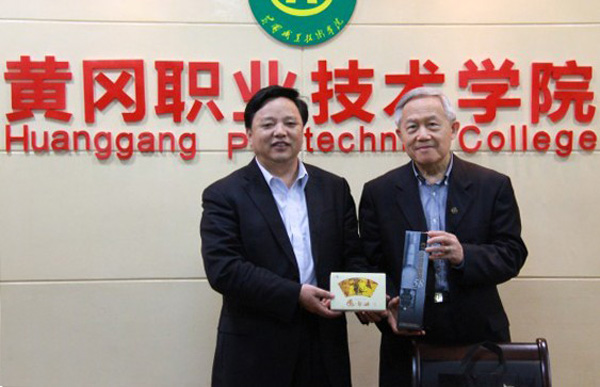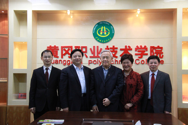 (左三:湖北省职业技术教育学会会长马必学,左四:武汉职院外事处处长张一婵)